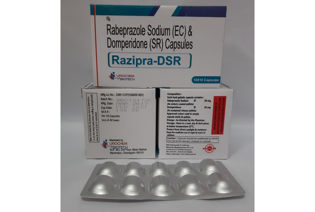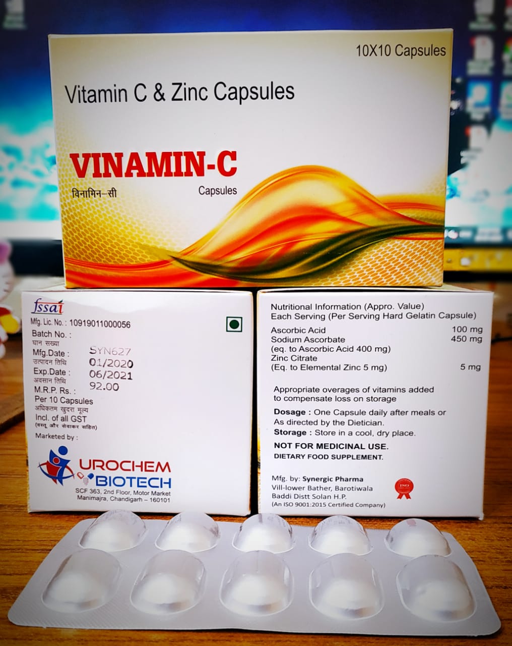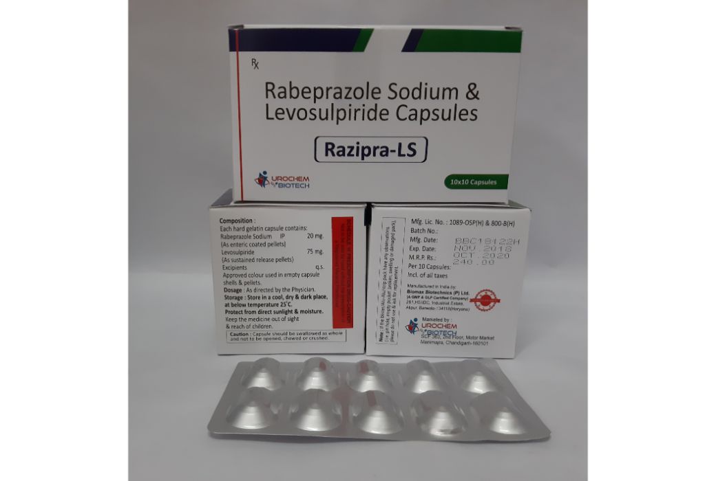 Hardgel Capsules VINAMIN-C Composition : Ascorbic acid 100 MG+Sodium Ascorbate 450 MG, Equivalent to Ascorbic Acid 400 mg + Zinc Citrate, Equivalent to elemental zinc 5 mg Packing : 10*10 Pack Type : Alu/Alu DOMPARA - O Composition : Omeprazole 20mg + Domperidone 10mg Caps Packing : 10*10 Pack Type : STRIP PACKING HEPFER-M Composition : Methylcobalamin 500 mcg + Carbonyl Iron 100 mg+ Folic Acid 5mg Packing : 10*10 Pack Type : Alu/Alu Itnazole-100 Composition : Itraconazole USP 100 Mg capsules Packing : 10*4 Pack Type : Alu/Alu Itnazole-200 Composition : Itraconazole USP 200 Mg capsules Packing : 10*1*4 Pack Type : Alu/Alu Multivmin Composition : Multivitamin + Multiminerals + Antioxidant Packing : 10*10 Pack Type : Alu/Alu MICOBALA-P Composition : Methylcobalamin 750mcg + Pregabalin 75mg Capsule Packing : 10*10 Pack Type : Alu/Alu PETZOL-DSR Composition : Pantoprazole Sodium IP 40mg+Domperidone IP 30mg (SR) Packing : 10*10 Pack Type : Alu/Alu RAZIPRA-DSR Composition : Rabeprazole Sodium IP 20 mg + Domperidone IP 30 mg (SR) Packing : 10*10 Pack Type : Alu/Alu RAZIPRA-LS Composition : Rebeprazole Sodium IP 20 mg + Levosulpride 75 mge Packing : 10*10 Pack Type : Alu/Alu SEMIPRA-DSR Composition : Esomeprazole +Domperidone Dsr Capsules Packing : 10*10 Pack Type : Alu/Alu UROTIC-CAP Composition : Pre & Probiotic capsules Packing : 10*10 Pack Type : Alu/Alu Previous Next Page Contact Us Plot No.229, 2nd floor, Industrial Area, Phase-1, Panchkula, Haryana-134113 0172-5266363 +(91) 81460 70172 +(91) 8699005181 info@urochembiotech.in Facebook Twitter Linkedin