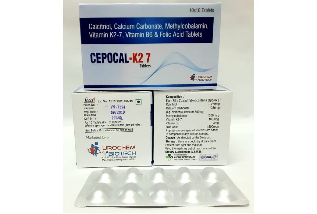 • Composition : Calcitriol 0.25mcg + Calcium Carbonate 1250mg+(eq. elemental calcium 500mg)+Methylcobalamine 1500mcg+ Vitamin K2-7 -100mcg+Vitamin B6-3mg+Folic Acid 1500 mcg