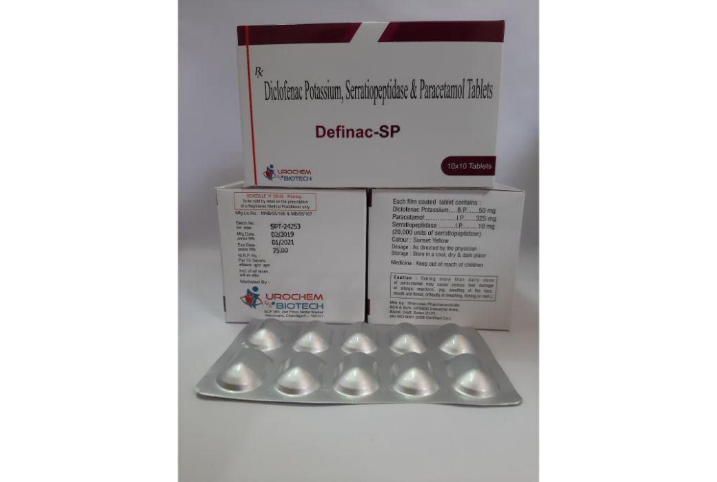 • Composition : Diclofenac Potassium BP 50 mg + Paracetamol IP 325 mg + Serratiopeptidase IP 10 mg