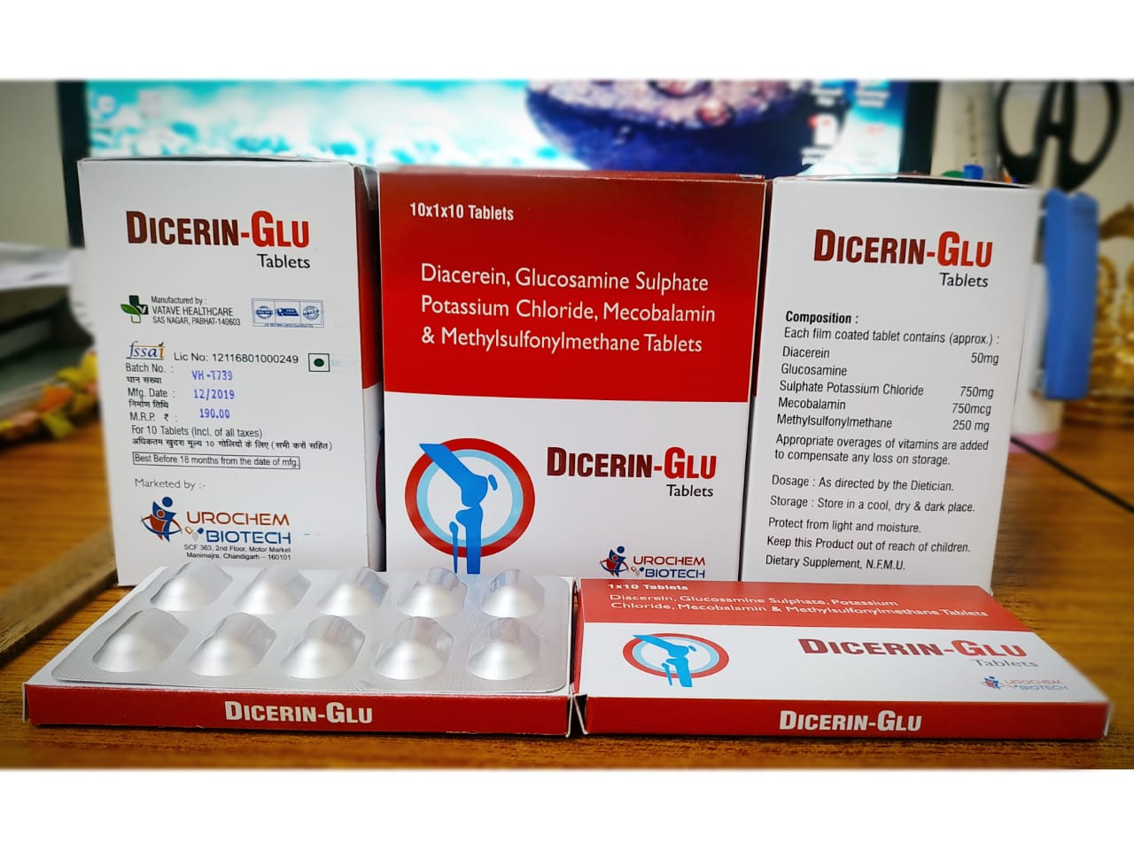 • Composition : Diacerein 50mg+Glucosamine Sulphate Potassium Chloride 750mg+Mecobalamin 750mcg+Methylsulfonylmethane 250 mg